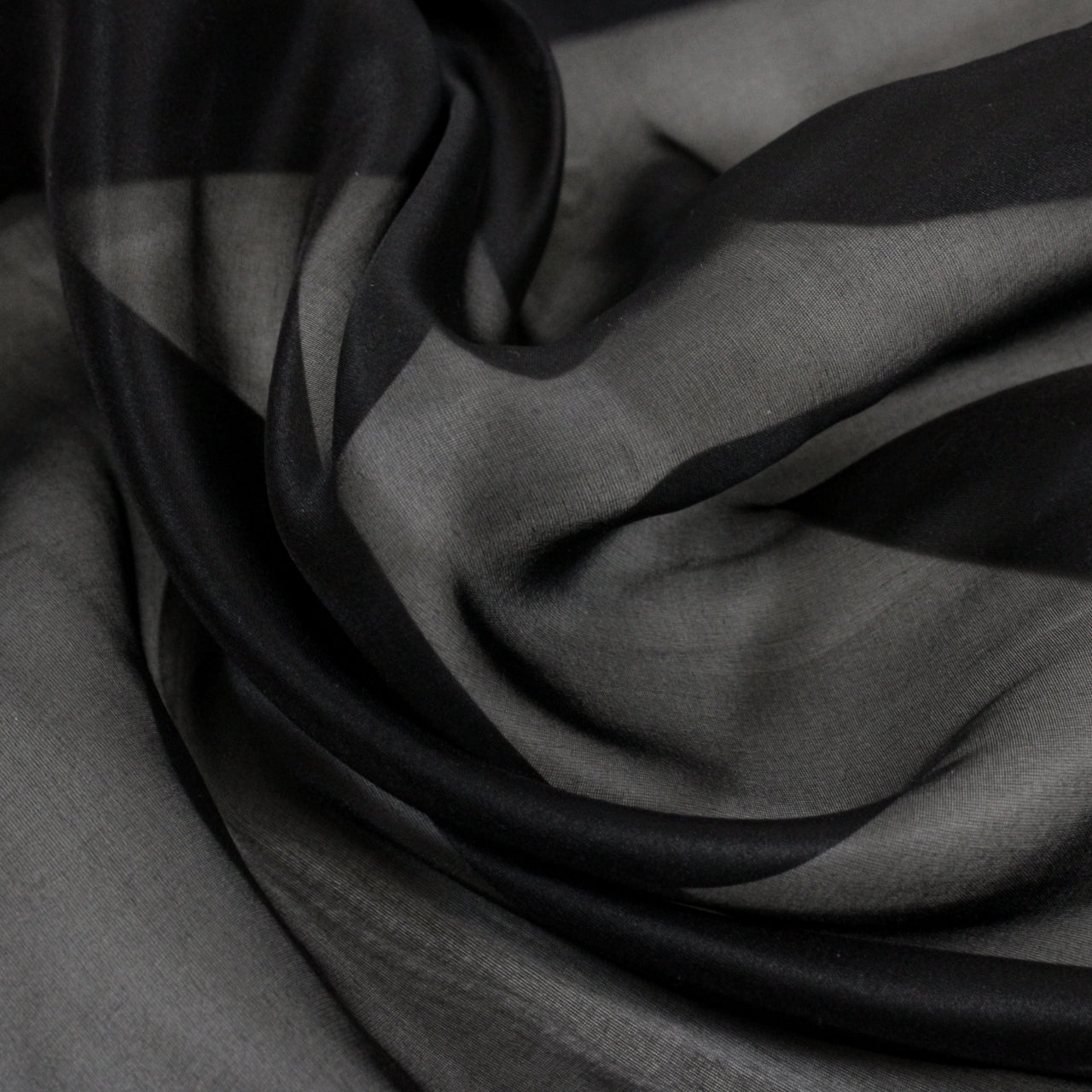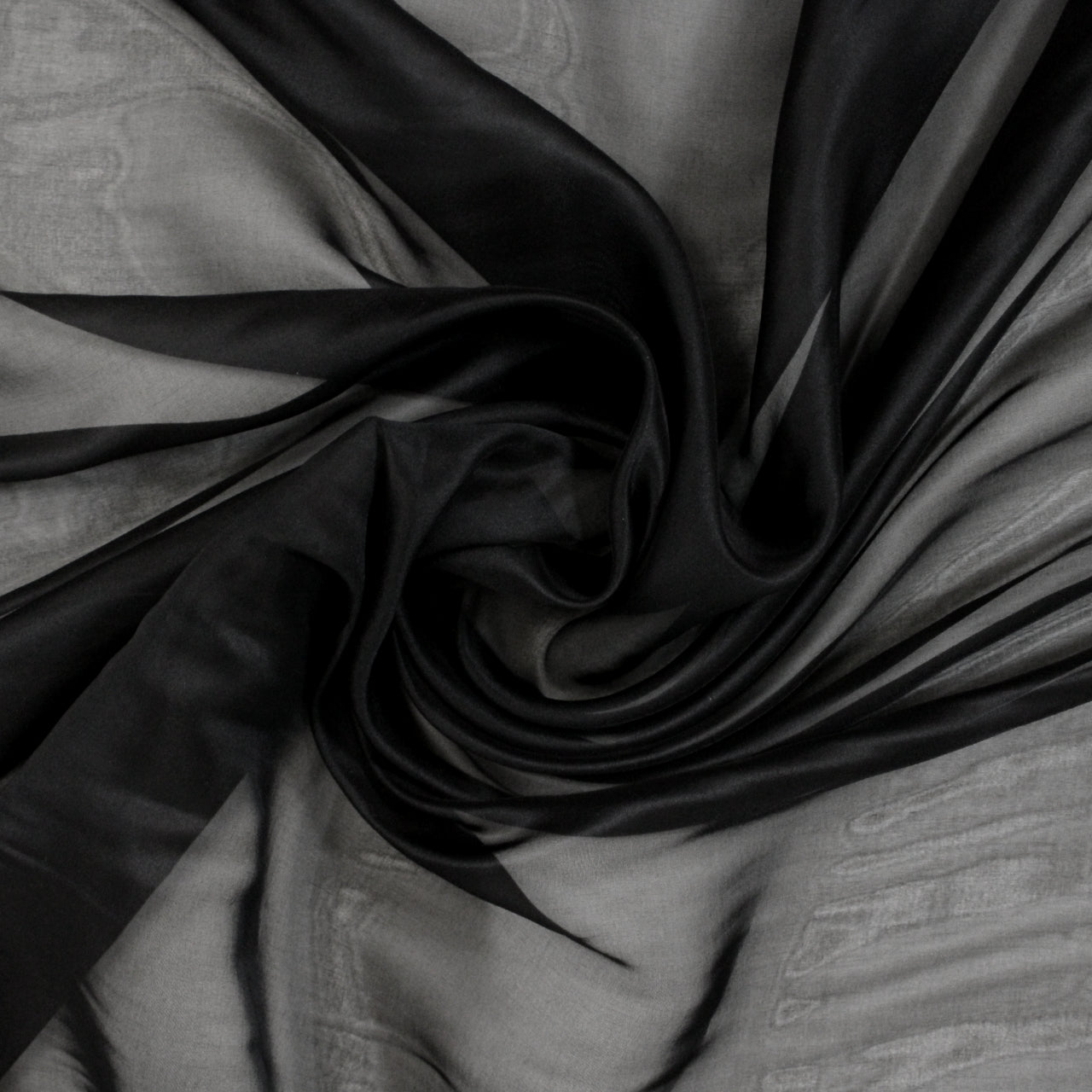 Silk chiffon available in black. Burn tested 100% silk content. Measures 56.5" in width and available for order by the yard.