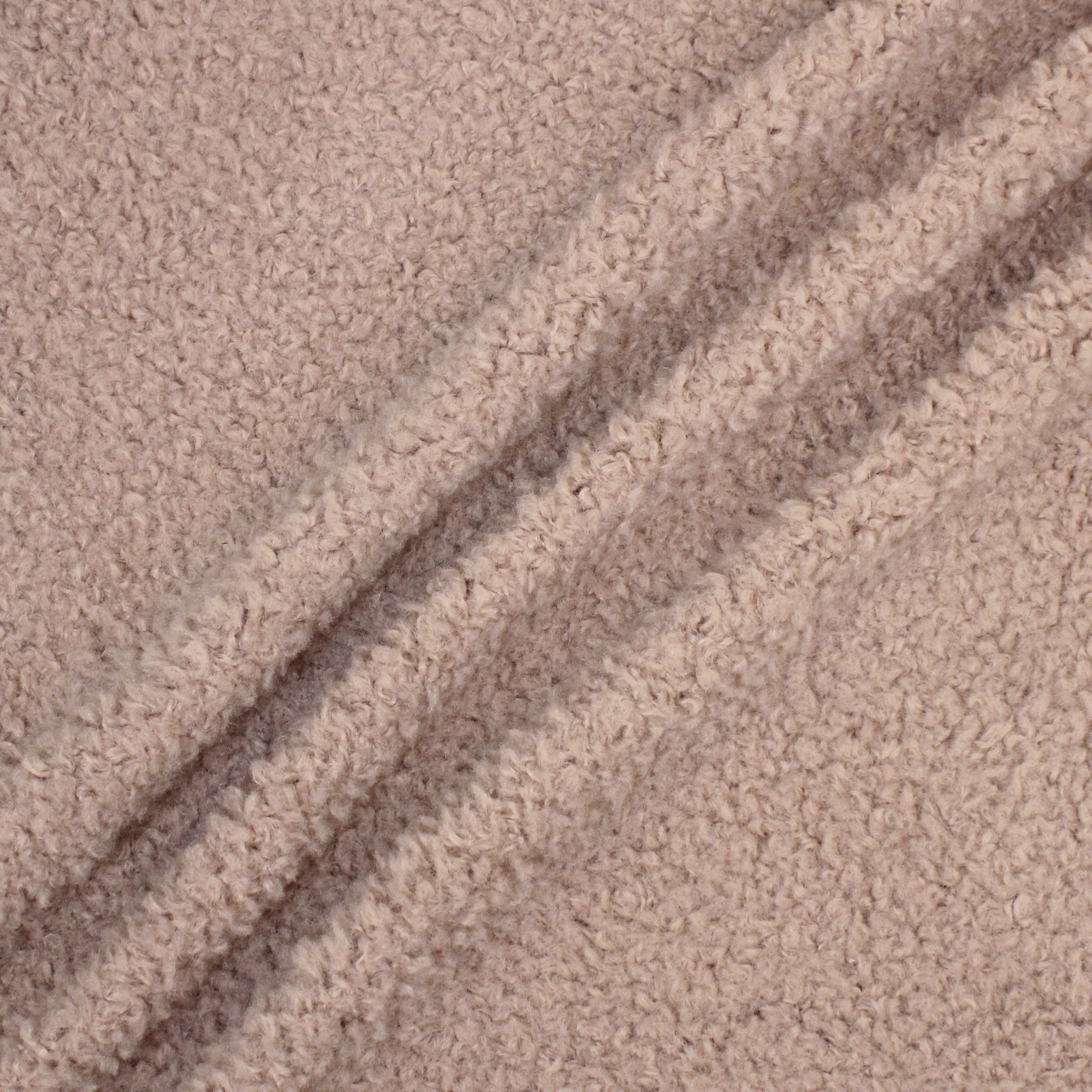 Soft fleece fabric available in a subtle blush pink. Burn tested as synthetic content. Measures 62" in width and available for order by the yard.