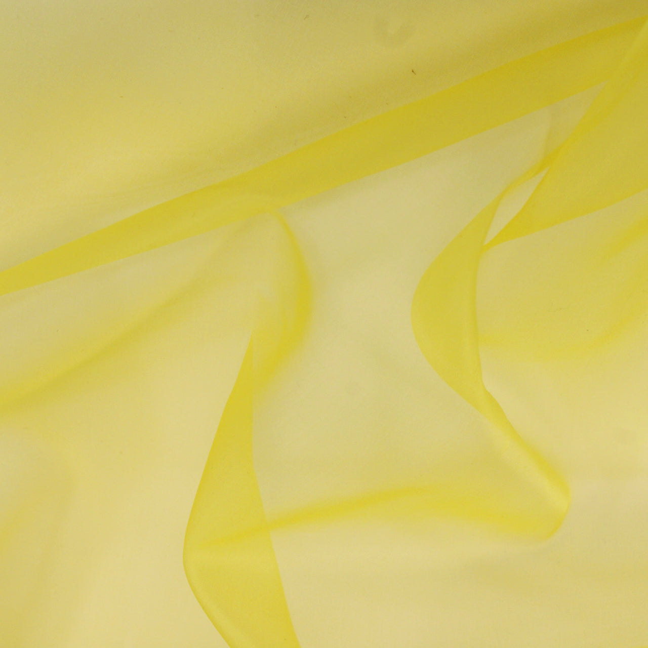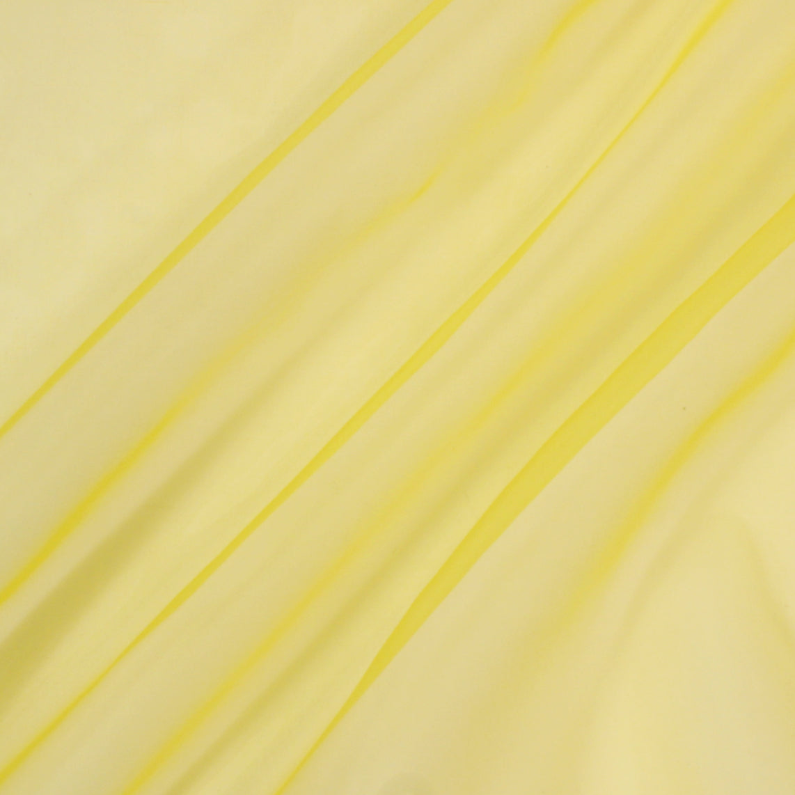 Silk organza in buttercup yellow. Burn tested 100% silk. Measures 44" in width and available for order by the yard.