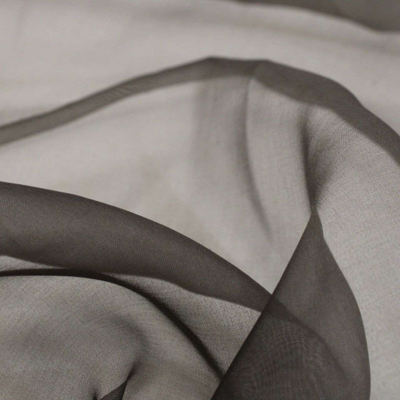 Organza available in a dusty cocoa color. Burn tested silk content. Measures 45" in width and is available for order by the yard.