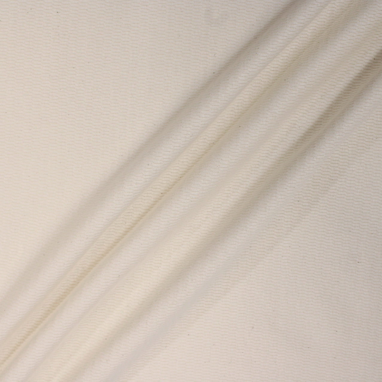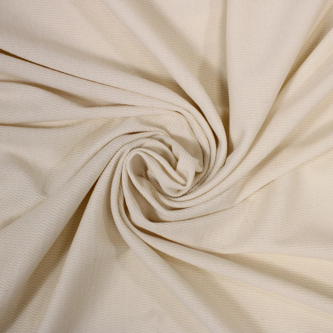Textured knit jersey available in a natural eggshell white. Burn tested natural content, likely cotton. Measures 47" in width, and available for order by the yard.