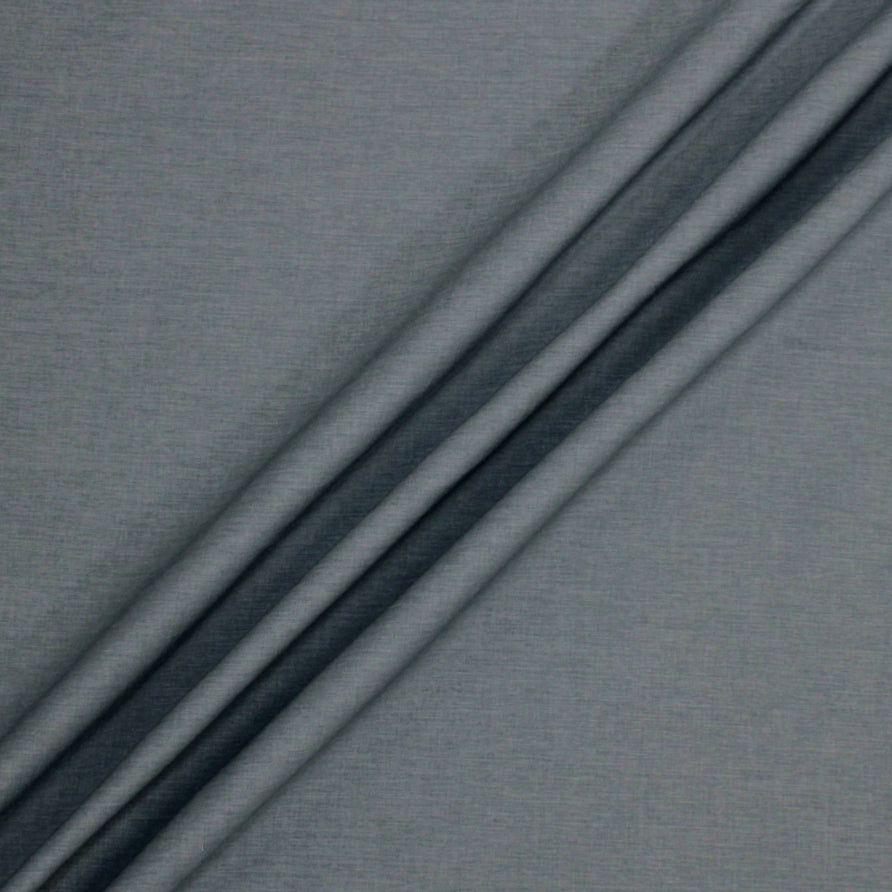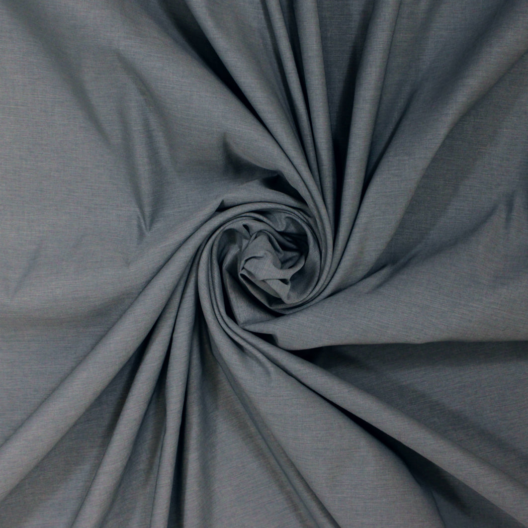 Heathered glacier blue-grey broadcloth. Burn tested synthetic content. Measures 62.5" wide and available for order by the yard.
