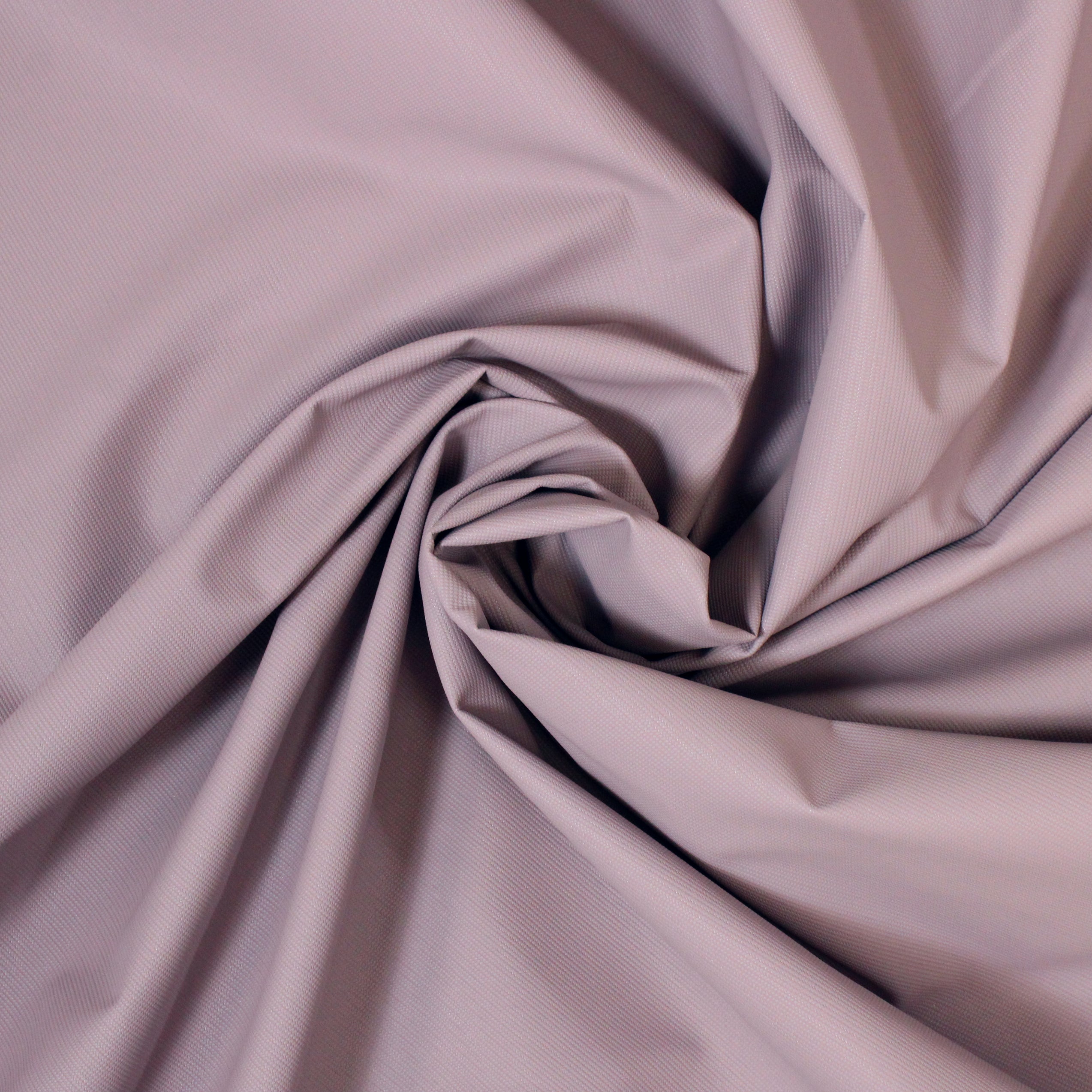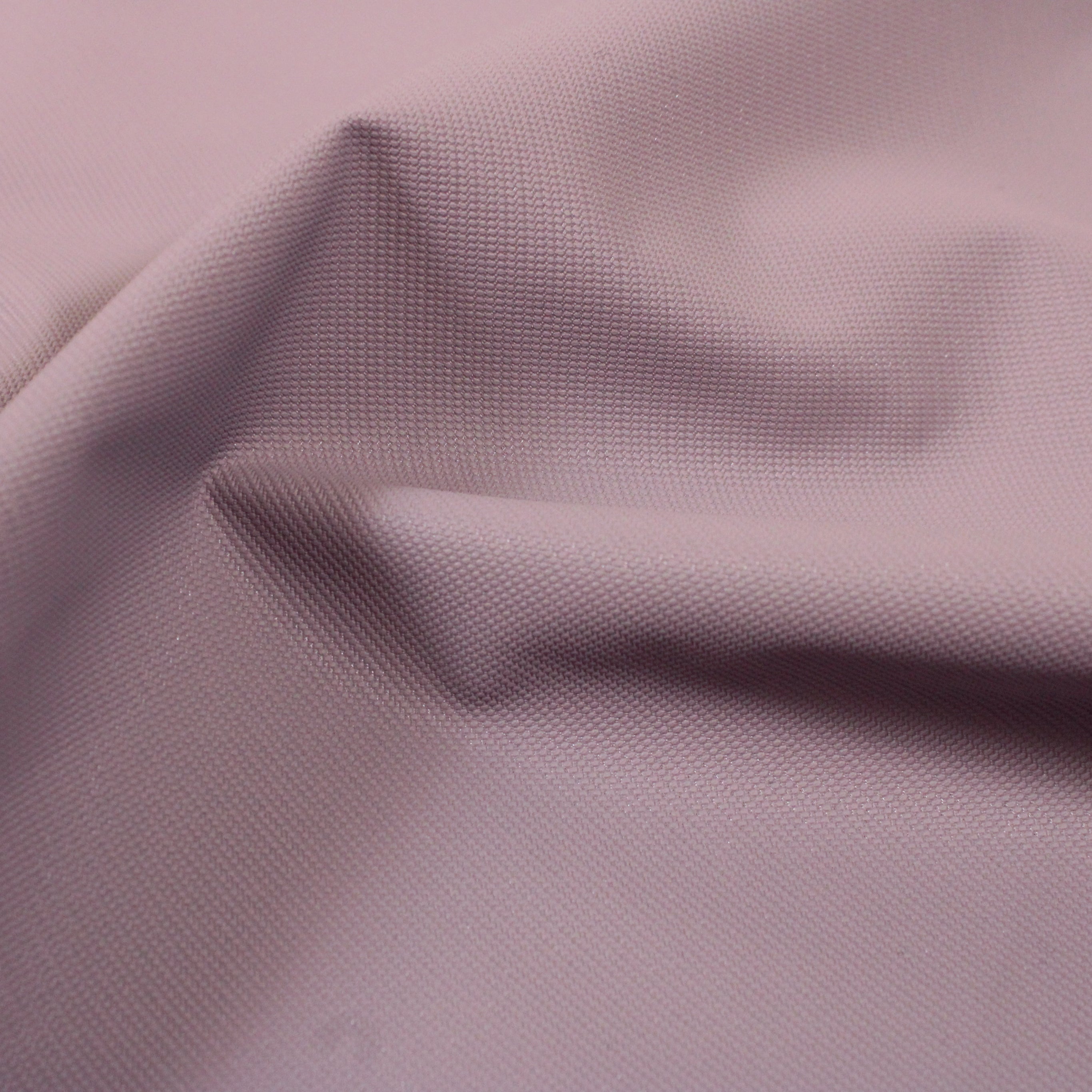 Vinyl in a hyacinth purple-pink color with embossed texture applied to resemble a twill weave. Labeled polyurethane coating. White synthetic knit backing is likely polyester content. Measures 55" in width and available for order by the yard.