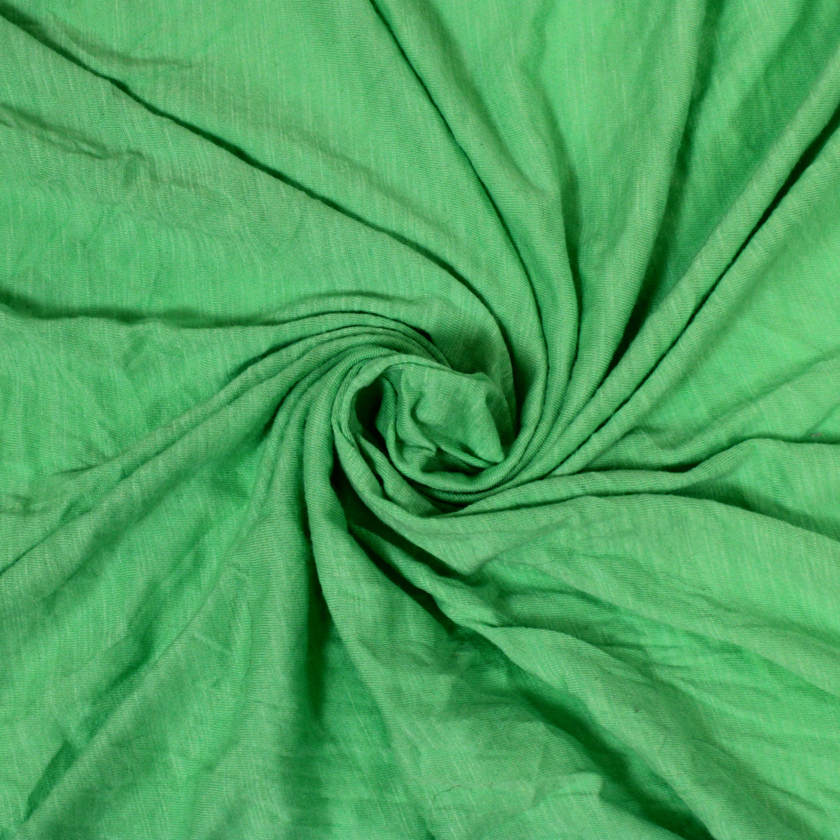 Heathered bright lizard green jersey fabric. Burn tested natural content, most likely cotton. Measures 65" wide and available for order by the yard.
