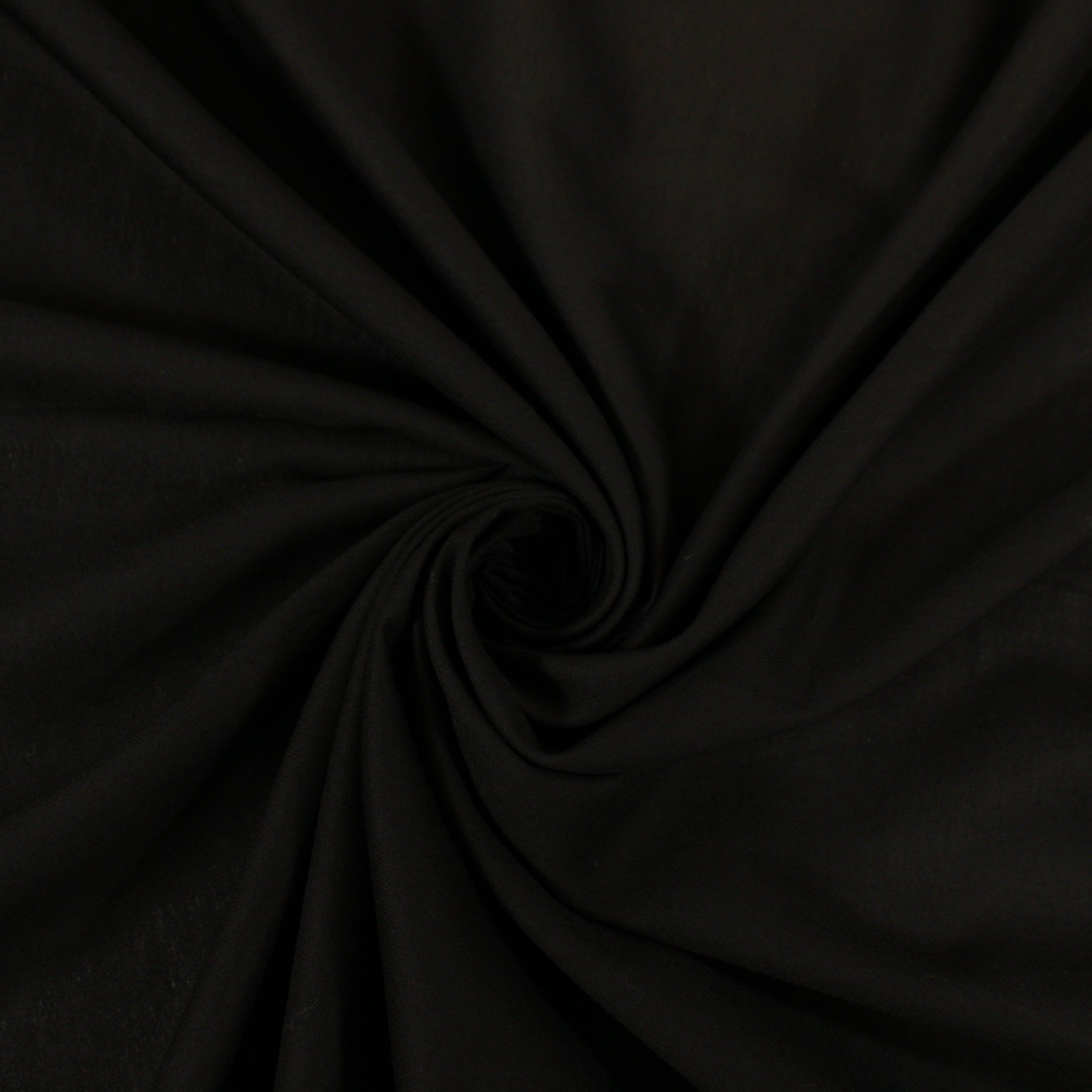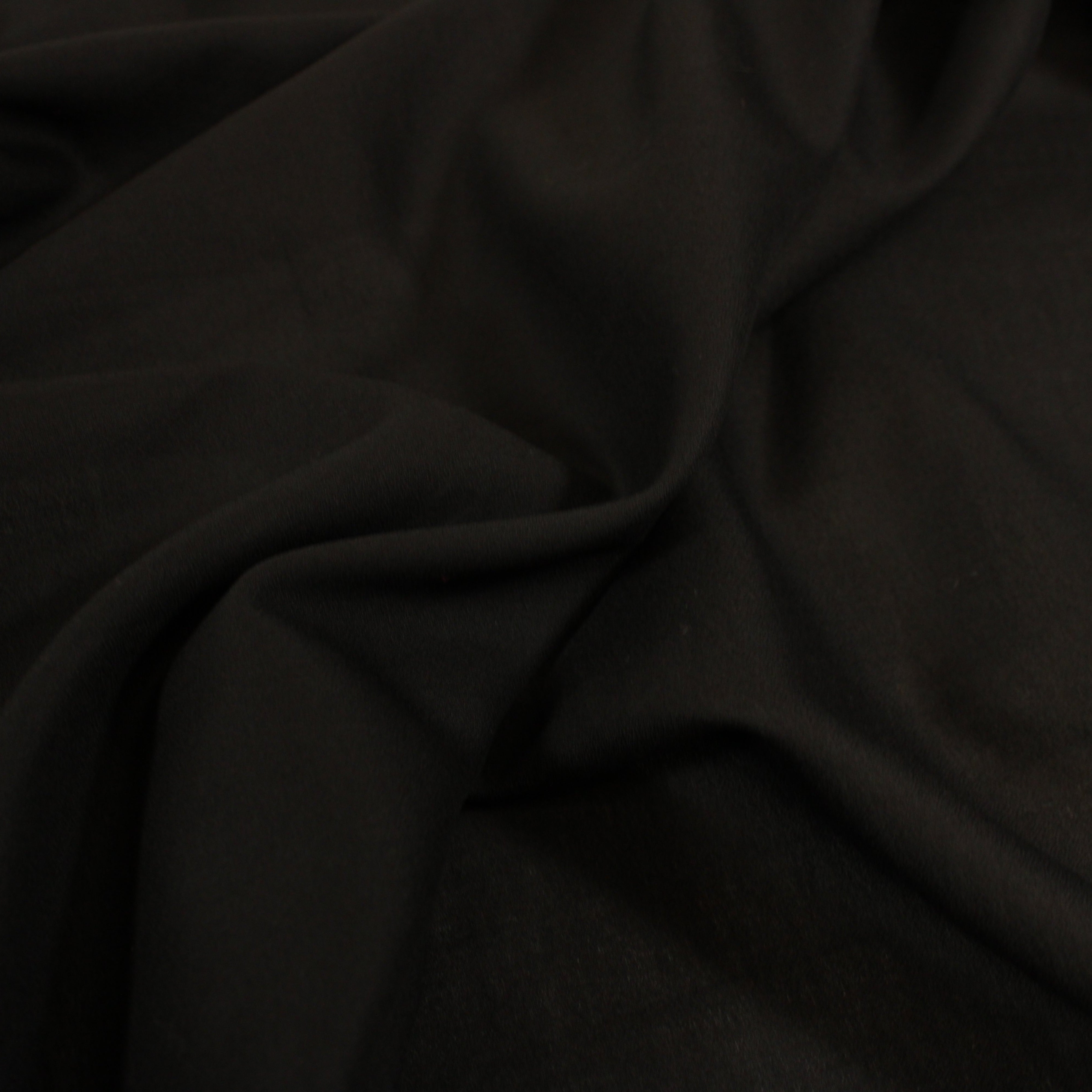 Matte Black Crepe fabric that is lightweight, drapey, and semi-sheer. Burn tested as silk content. Measures 51" in width and available for order by the yard.