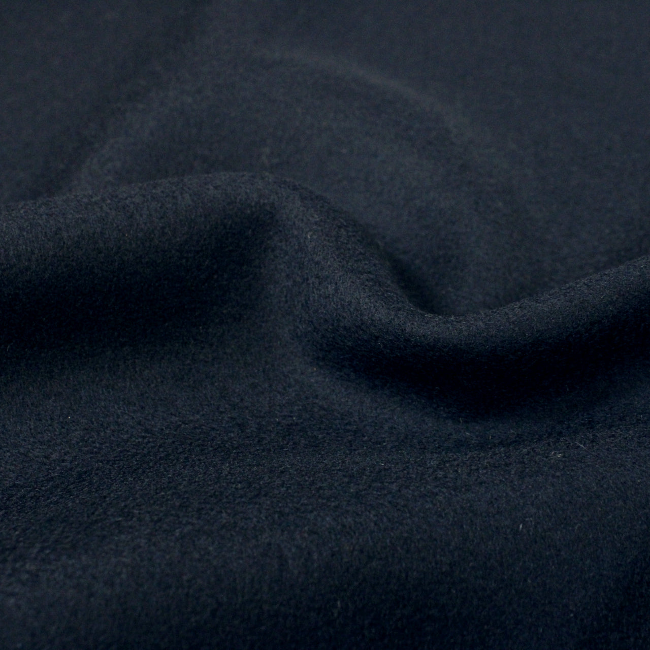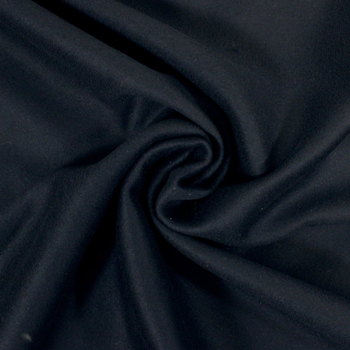 Midnight blue colored felt fabric, so deep of a navy that it is nearly black. Burn tested wool content. Measures 58.25" wide and available for order by the yard.
