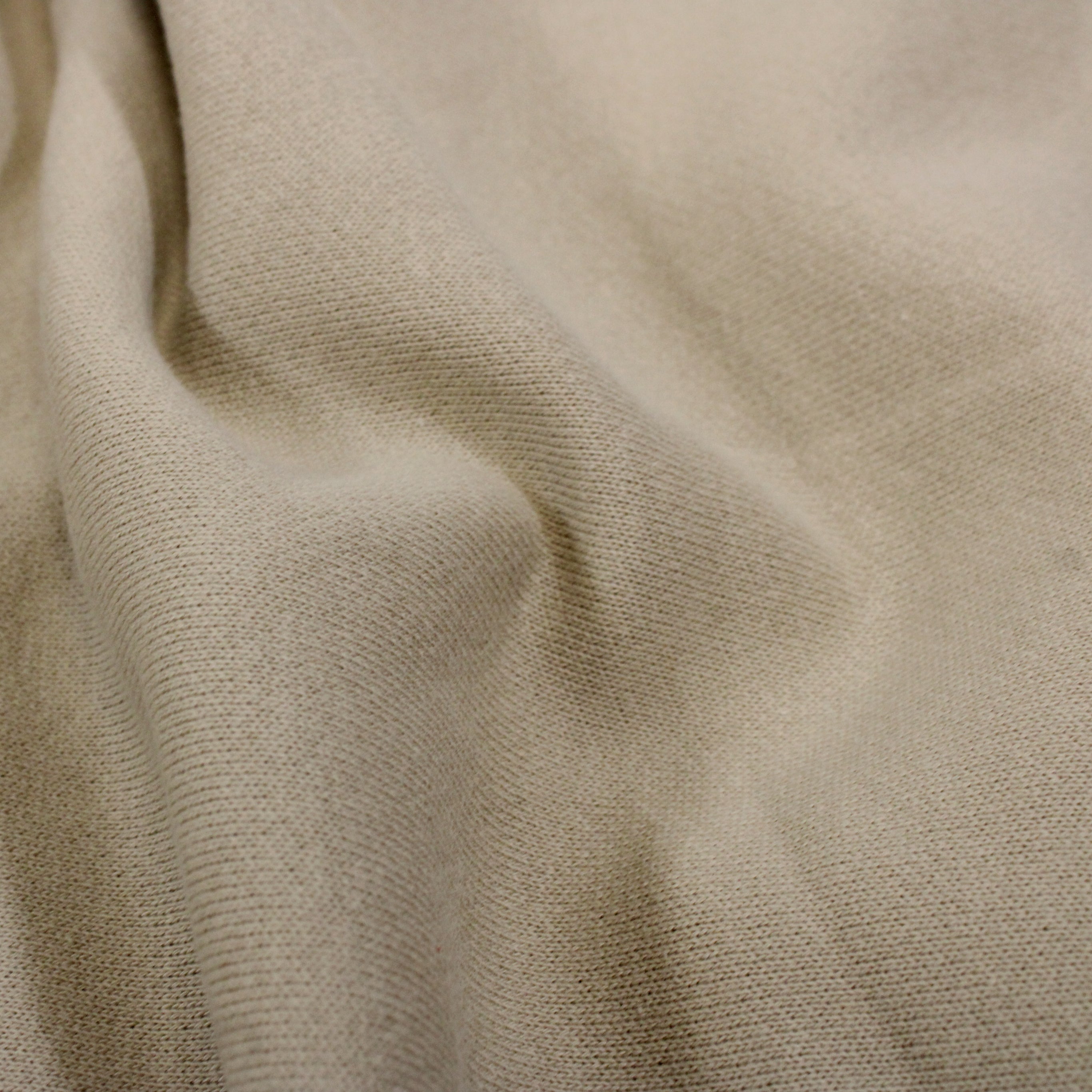 French terry jersey in a soft oatmeal cream color. Burn tested cotton content. Measures 73" wide and available for order by the yard.