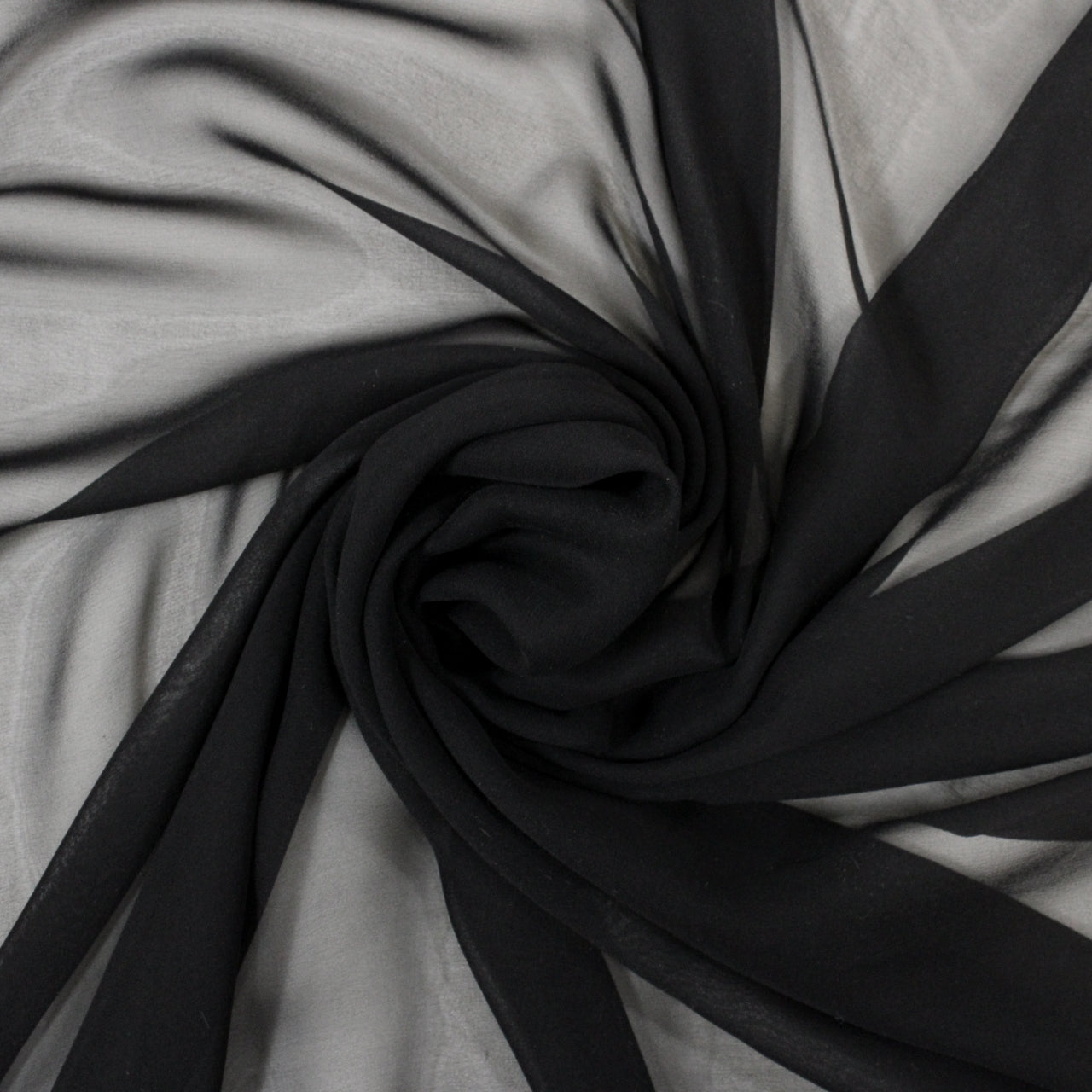 Very lightweight silk chiffon available in classic black. Burn tested silk content. Measures 56" in width and available for order by the yard.