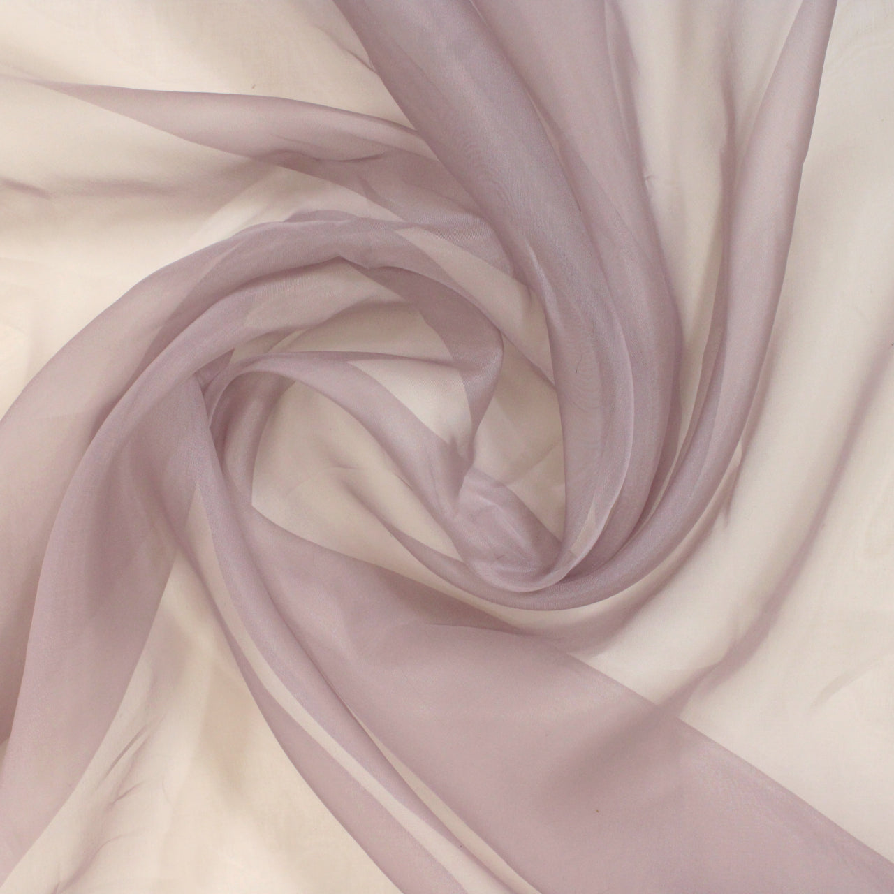 Organza available in pale orchid. Burn tested silk content. Measures 55" in width and is available for order by the yard.