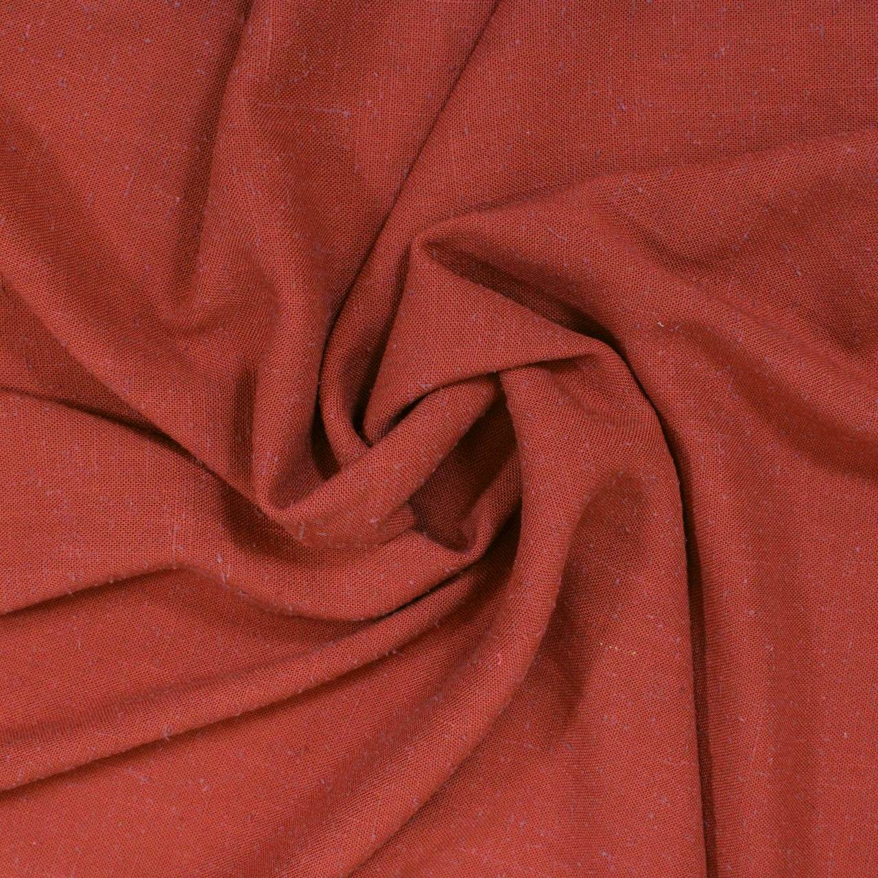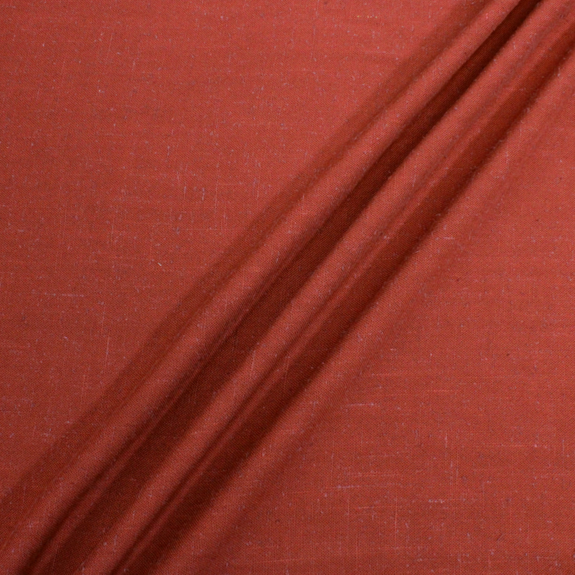 Rust colored hopsack fabric with a slub texture and subtle sheen. Burn tested as natural content, likely linen or hemp. Measures 55" wide and available to order by the yard.