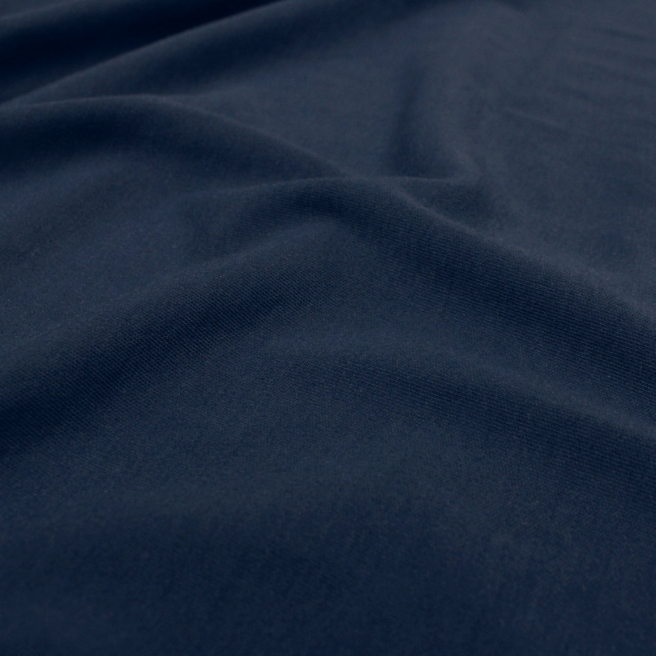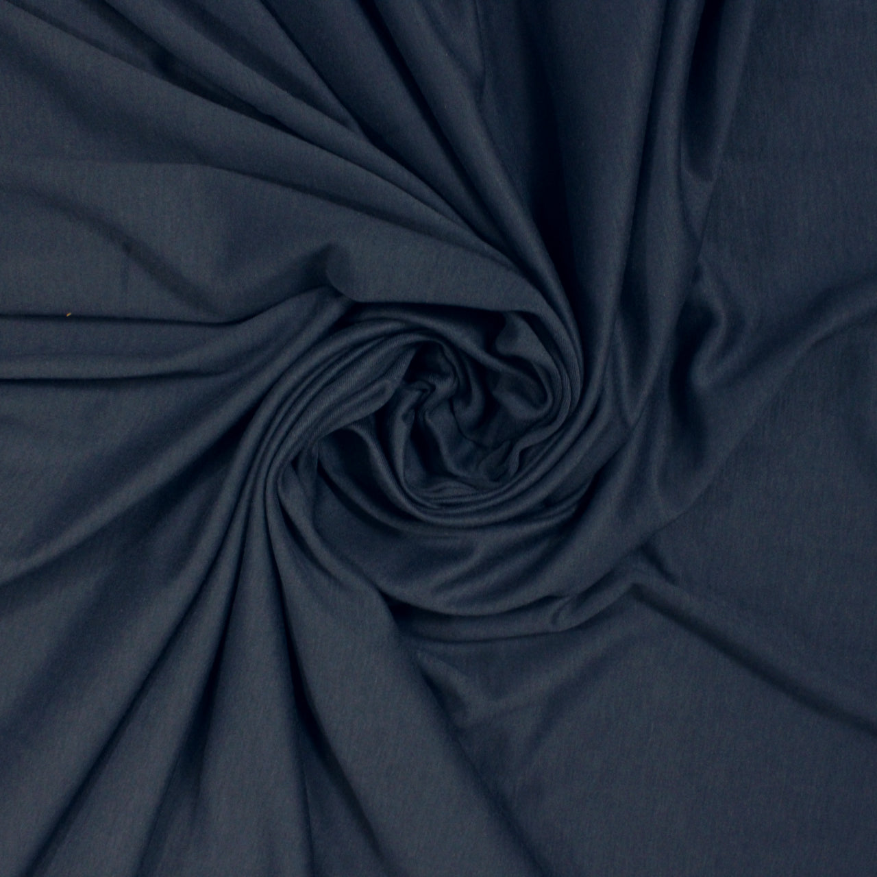 Solid, twilight blue colored jersey fabric. Labeled 100% Supima cotton content. Measures 61" wide and available for order by the yard.