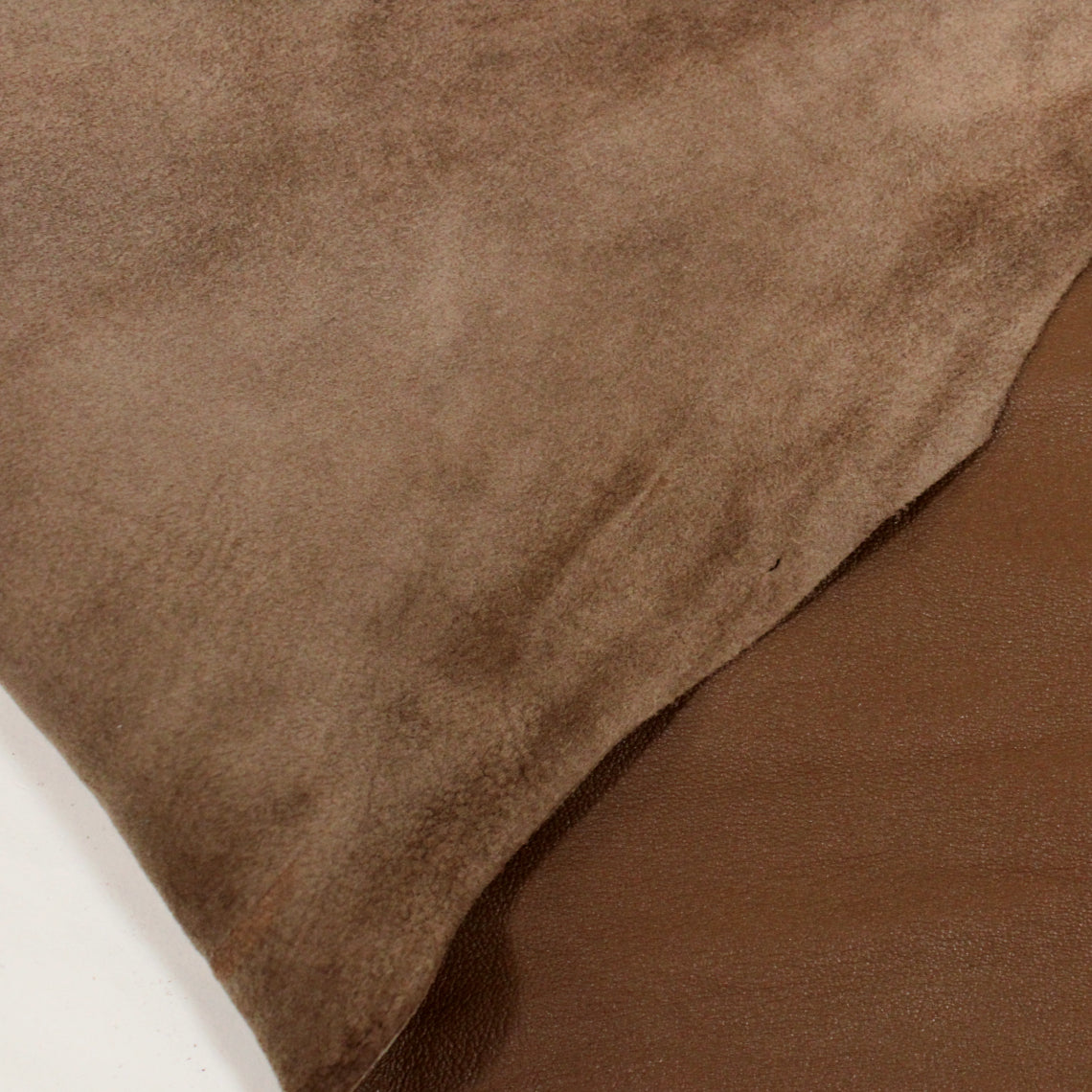 Lambskin leather in nutmeg brown with light brown slightly-sueded backside. Available to order as an approximate 6 square foot hide piece. As with any real skin, there may be slight variations in dye color, shape, and size.