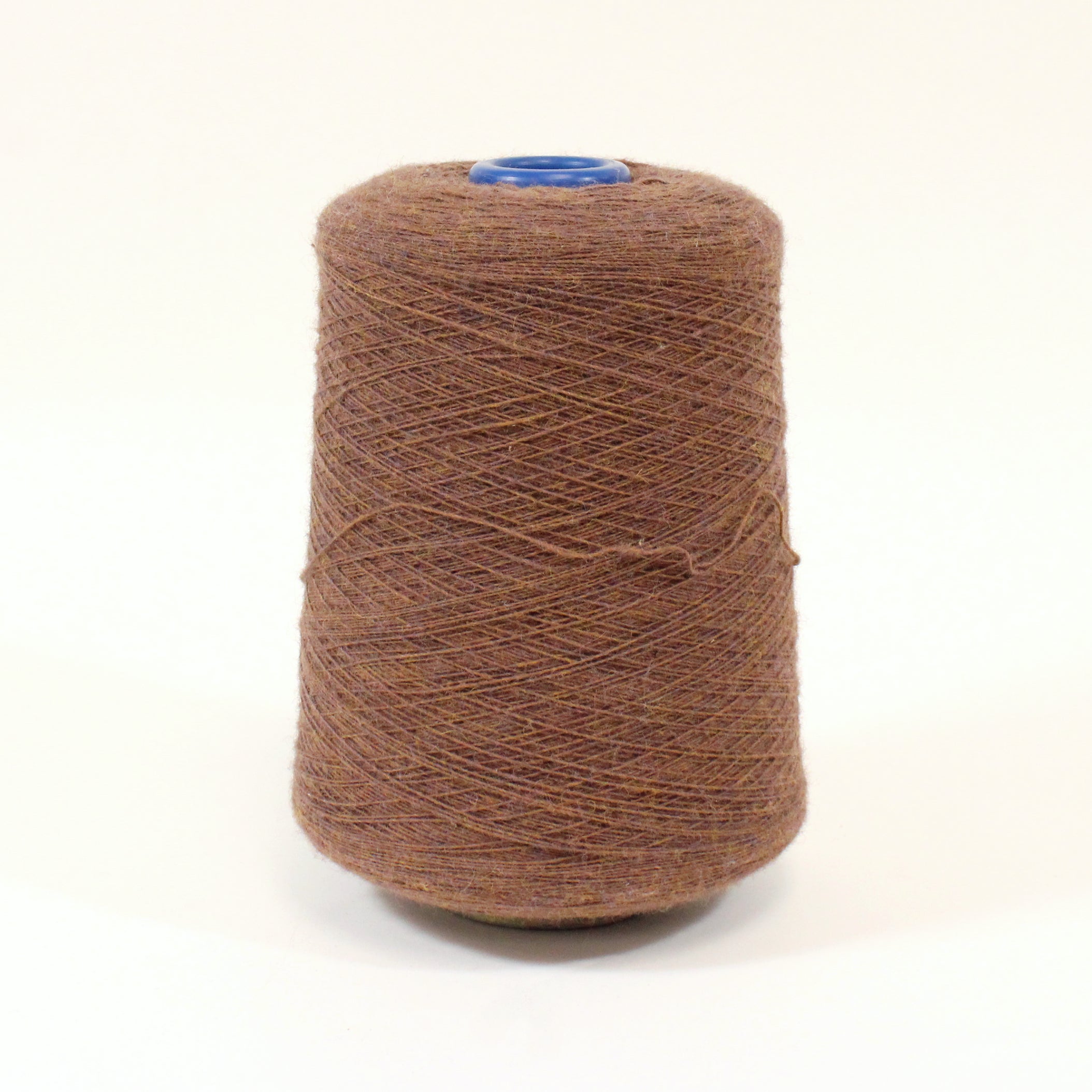 Fine-gauge gingerbread brown colored yarn. Burn tested wool content. Available for purchase as a 2.6lb cone.