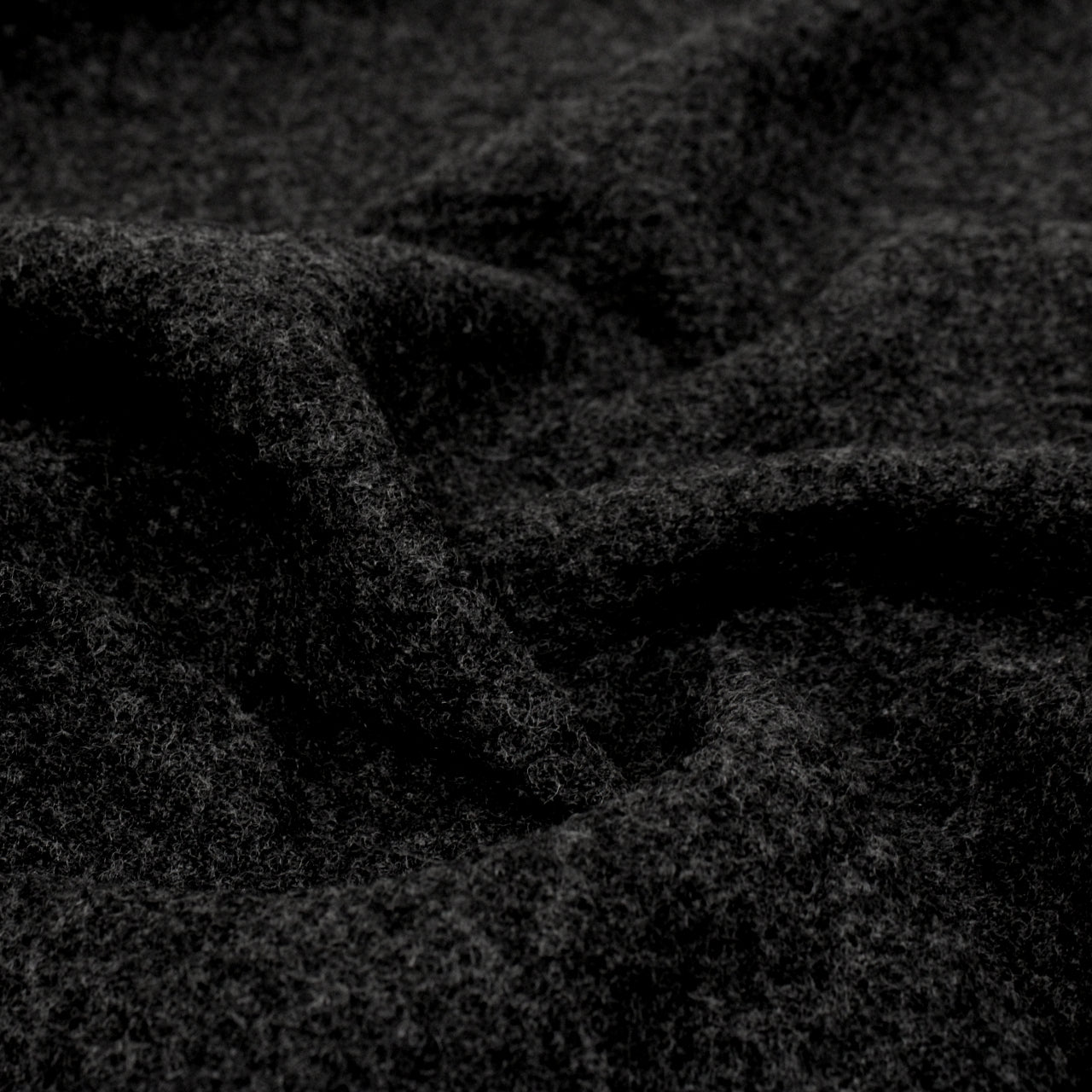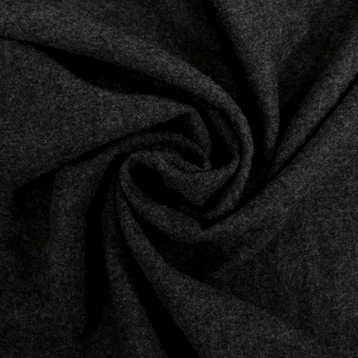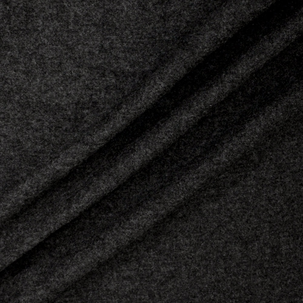 Graphite colored boiled wool fabric. Burn tested wool content. Measures 56" wide and available for order by the yard.