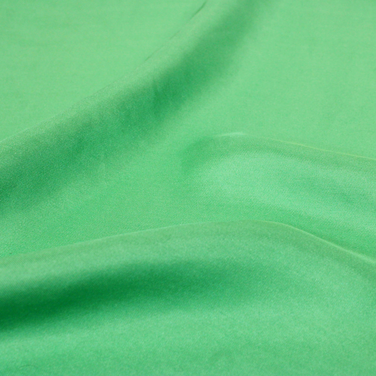 This twill weave mikado fabric is available in a bright spearmint color. Burn tested silk content. Measures 54” in width and is available for order by the yard.