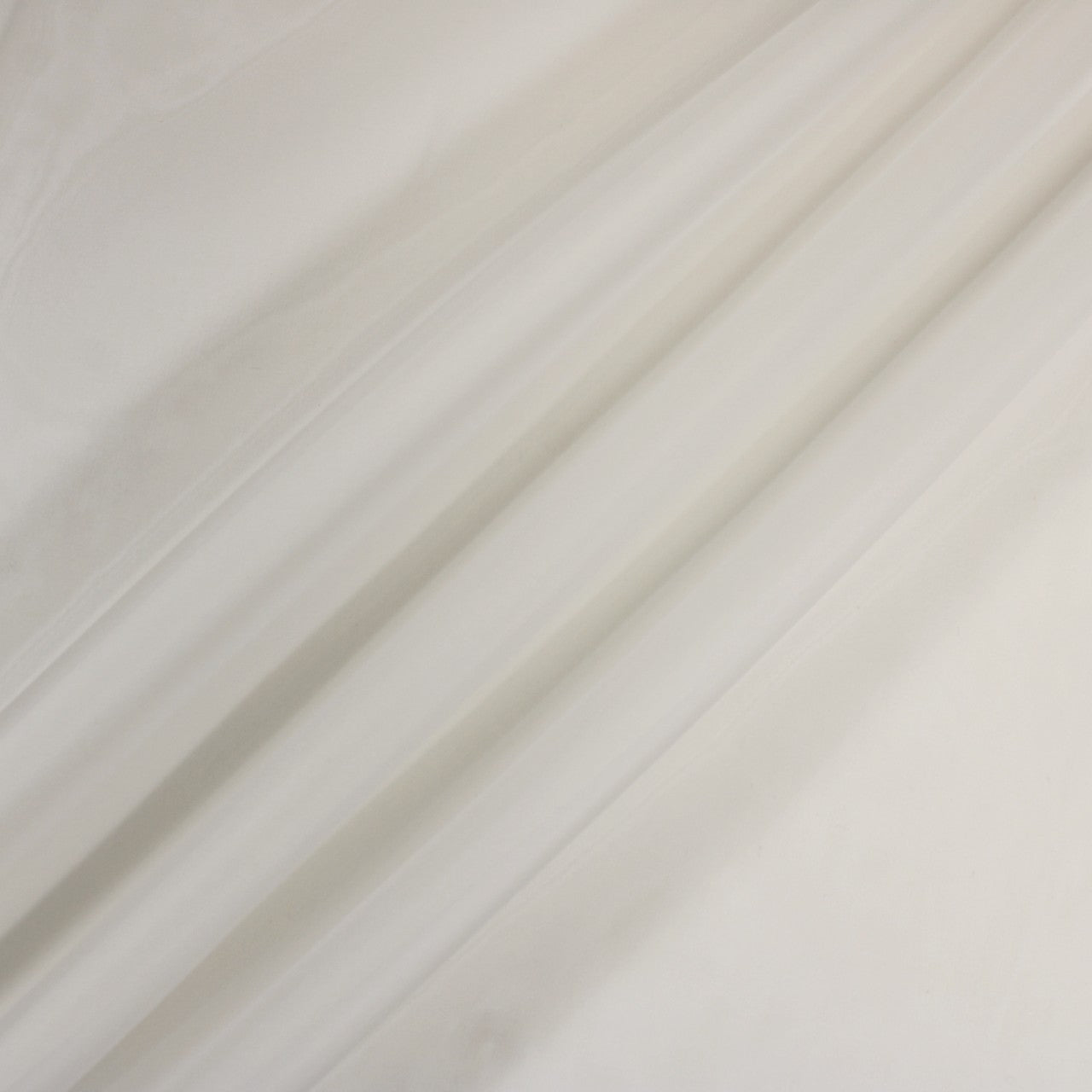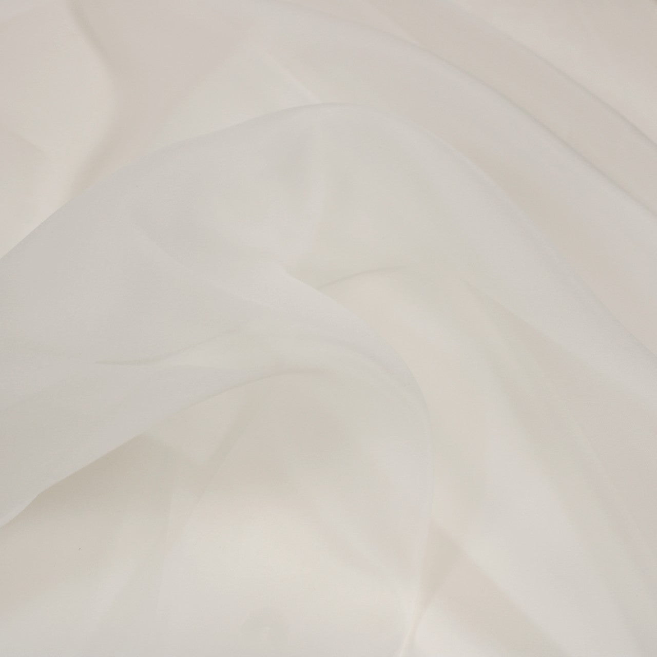 Organza in porcelain white. Burn tested 100% silk. Measures 52" in width and available as a 1 yard piece.