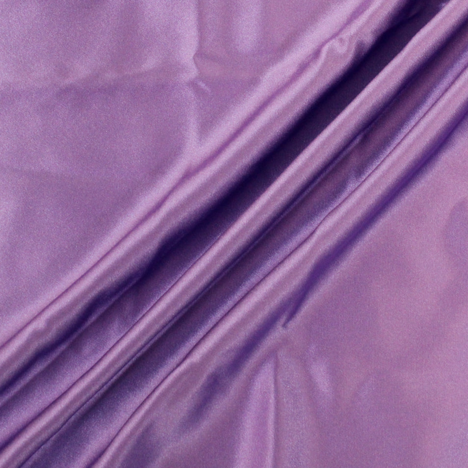 Silk charmeuse in a light purple color. Burn tested 100% silk content. Measures 44" in width and available for order as a 1 yard piece.
