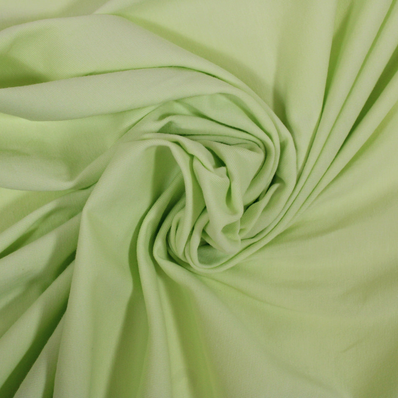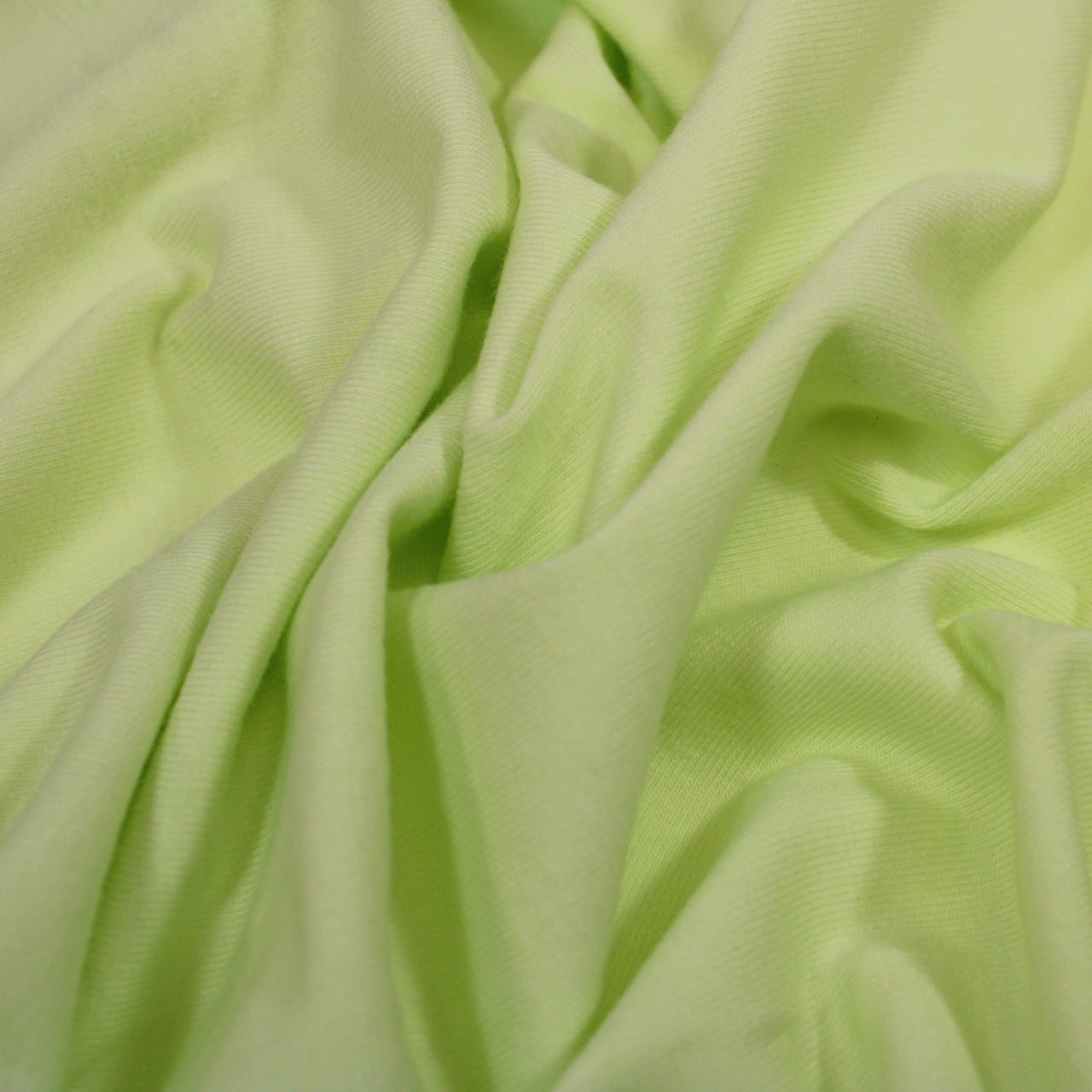 Double-faced interlock knit jersey in a bright citron color. Labeled 90% cotton, 10% elastane content. Measures 63" in width and available for order by the yard.