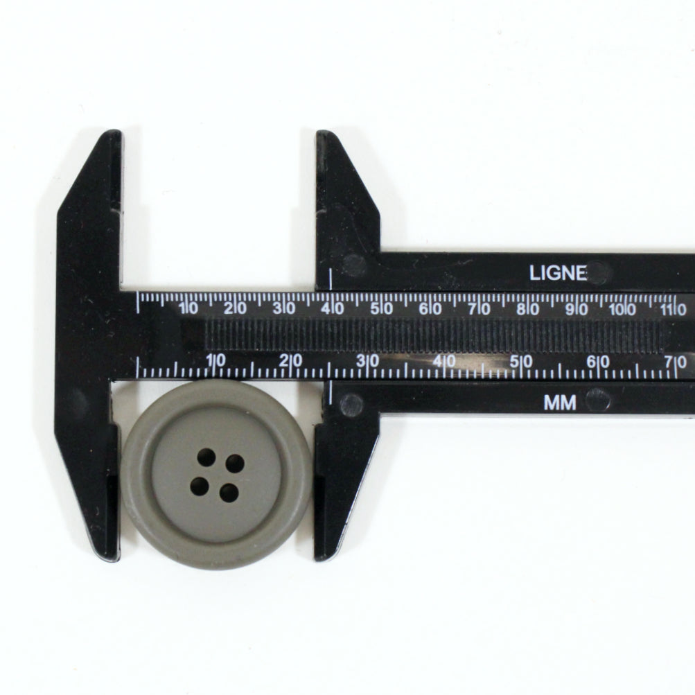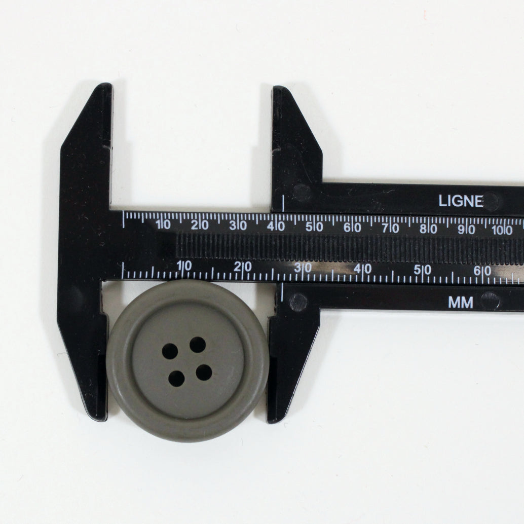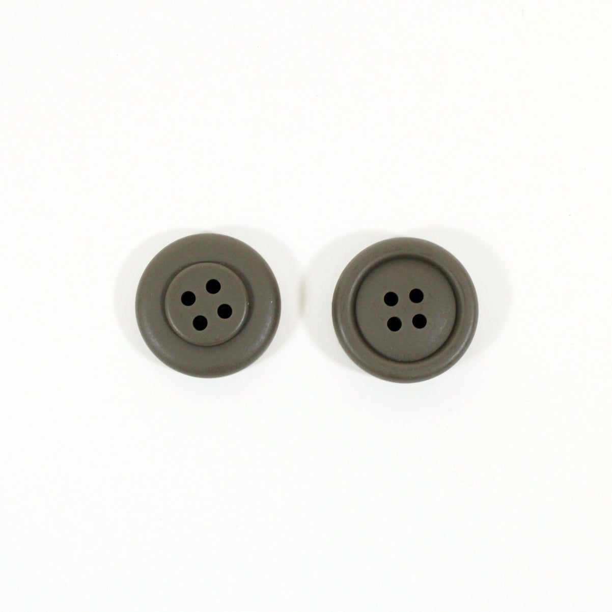 Matte taupe 4-hole buttons, most likely made from plastic. Available for order by the dozen.