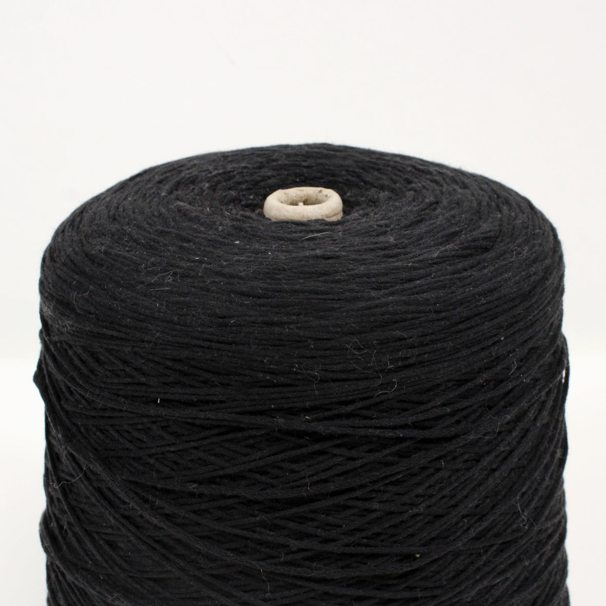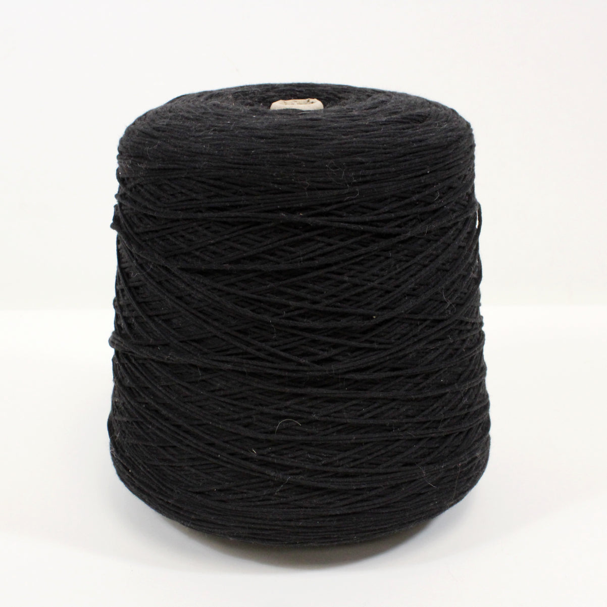 Midweight core yarn in classic black. Fiber content is labeled as 54% cotton, 46% mixed synthetic. Cone weighs 5.6lbs.