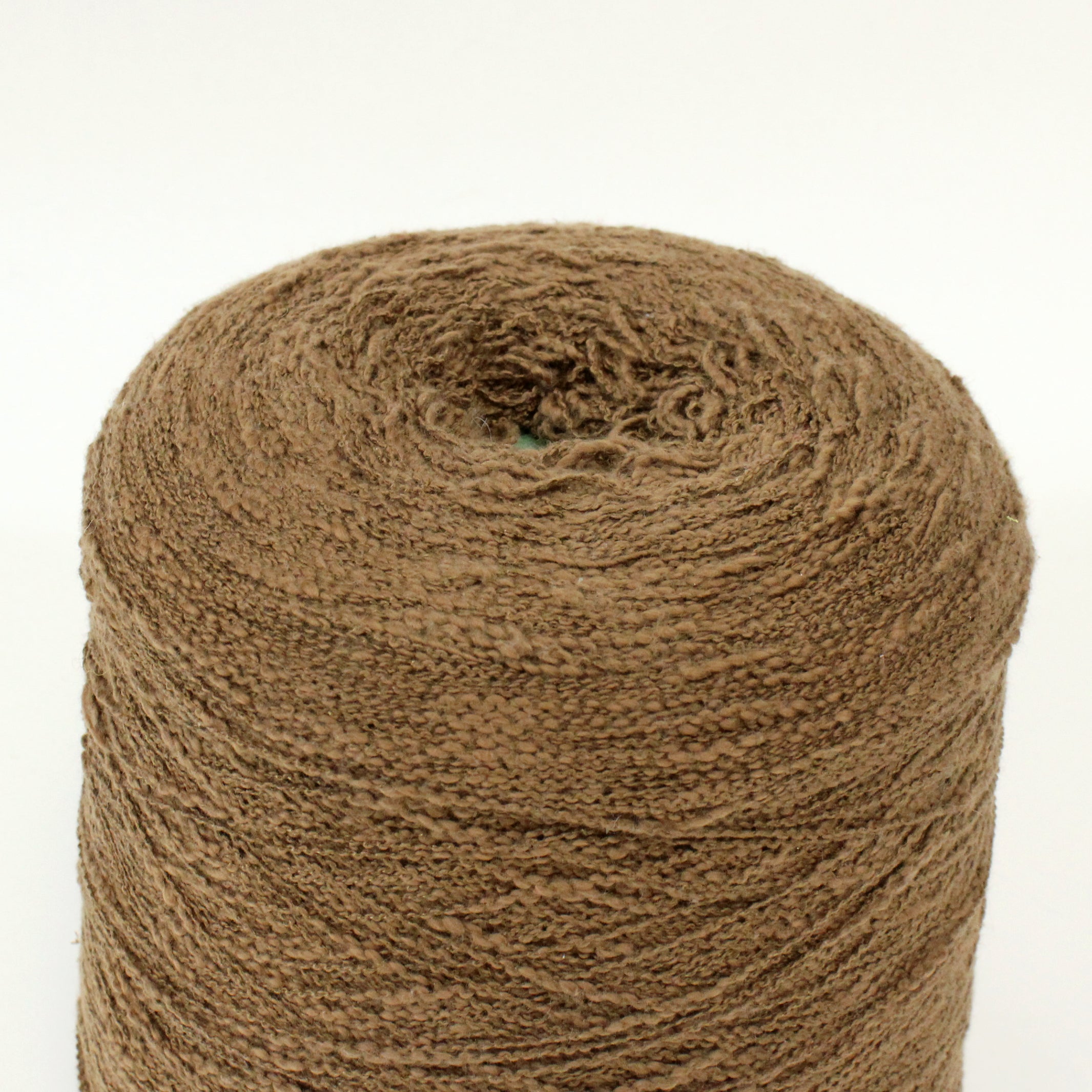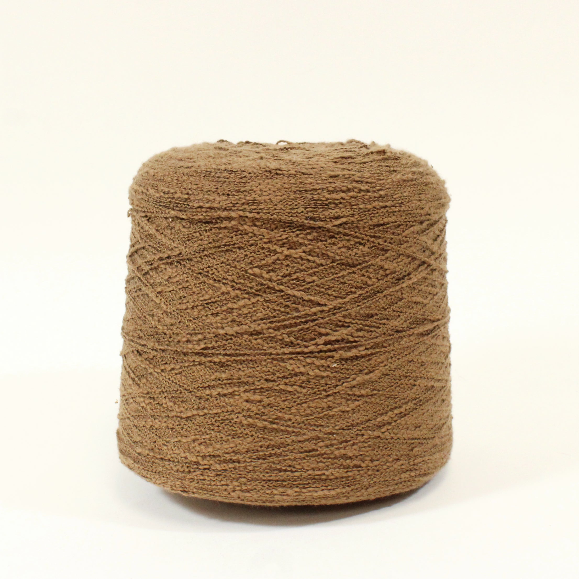 Lightweight textured slub yarn in a cocoa brown color. Labeled as a cotton-acrylic blend, with a gauge of 1/4.5NM. Cone weighs 3.0lbs.