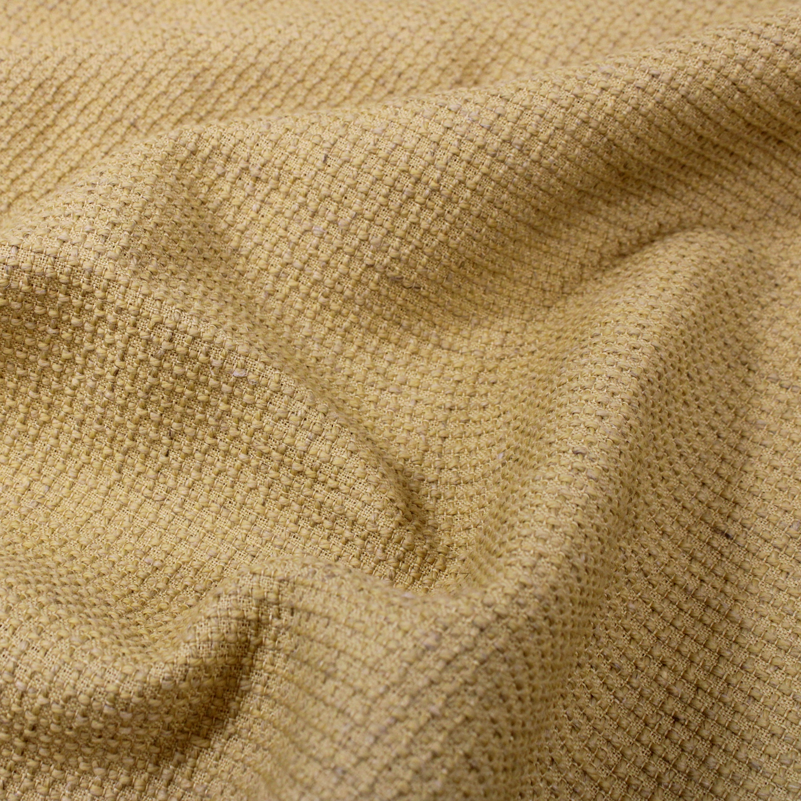 Upholstery fabric available in a goldenrod yellow color with a textural woven face. Burn tested natural content, likely wool. Measures 56" wide and available for order as a 1 yard piece.