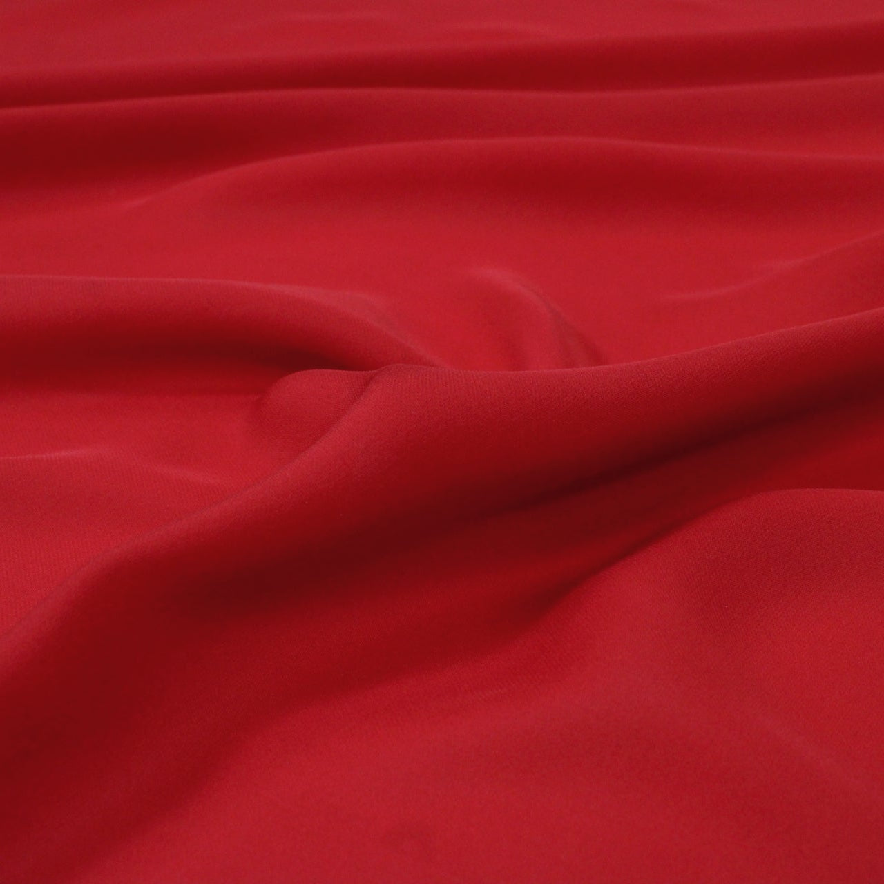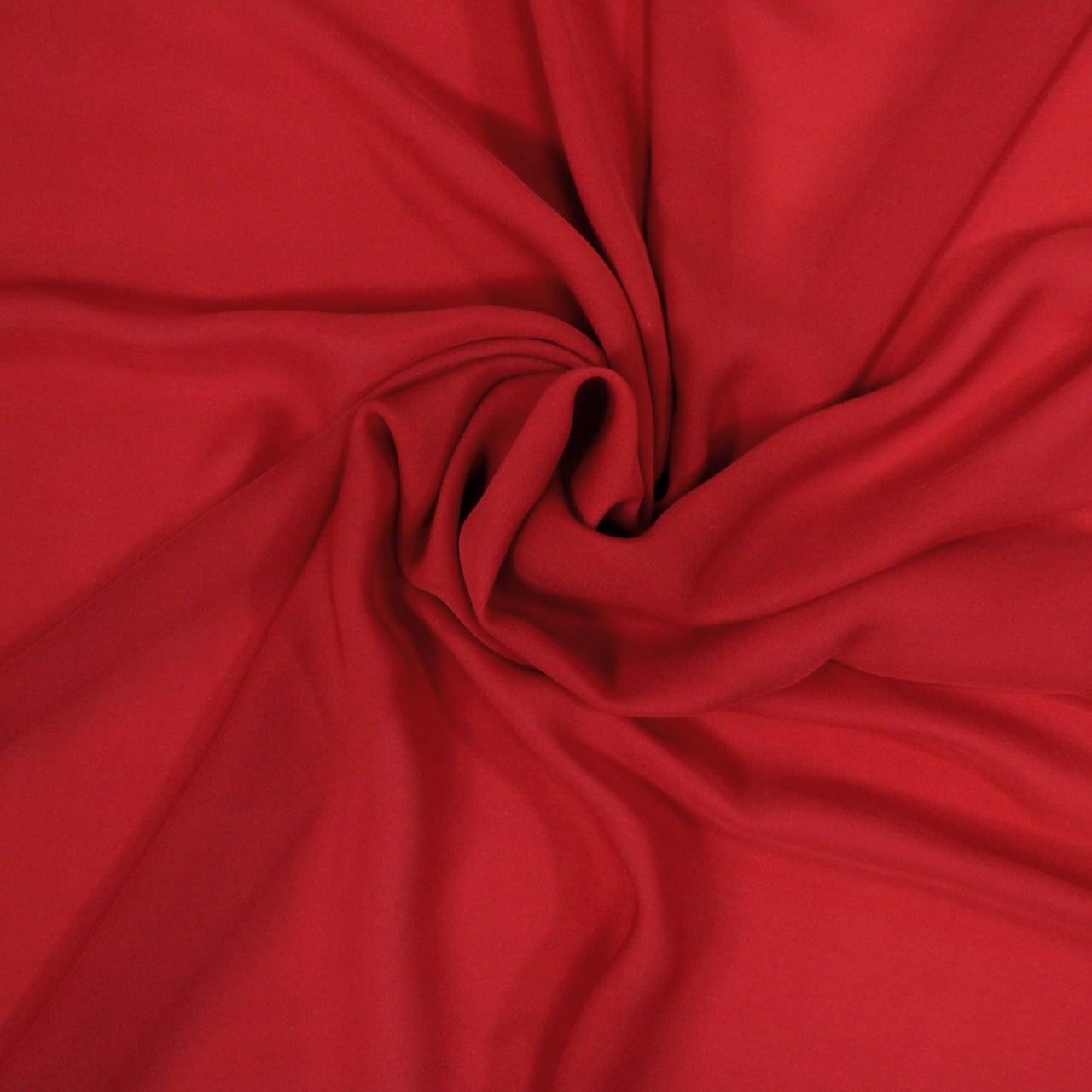 Drapey chiffon available in candy apple red. Burn tested silk content. Measures 53.5" in width and available for order by the yard.