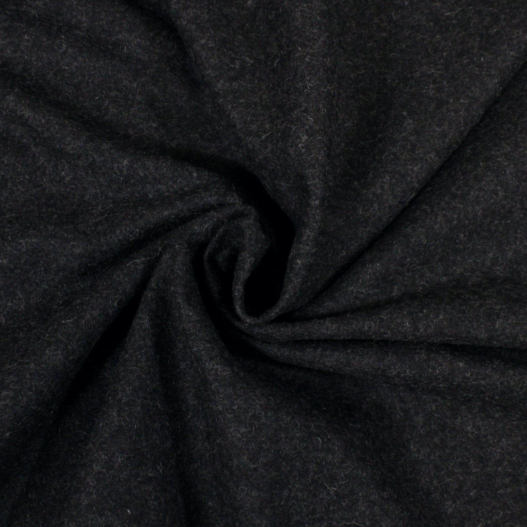 Charcoal colored felt fabric. Burn tested wool content. Measures 58.25" wide and available for order by the yard.