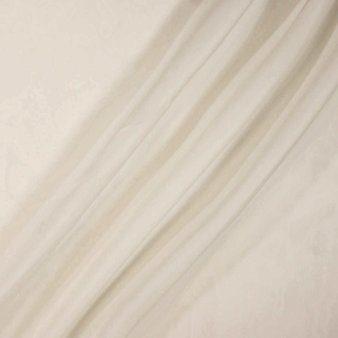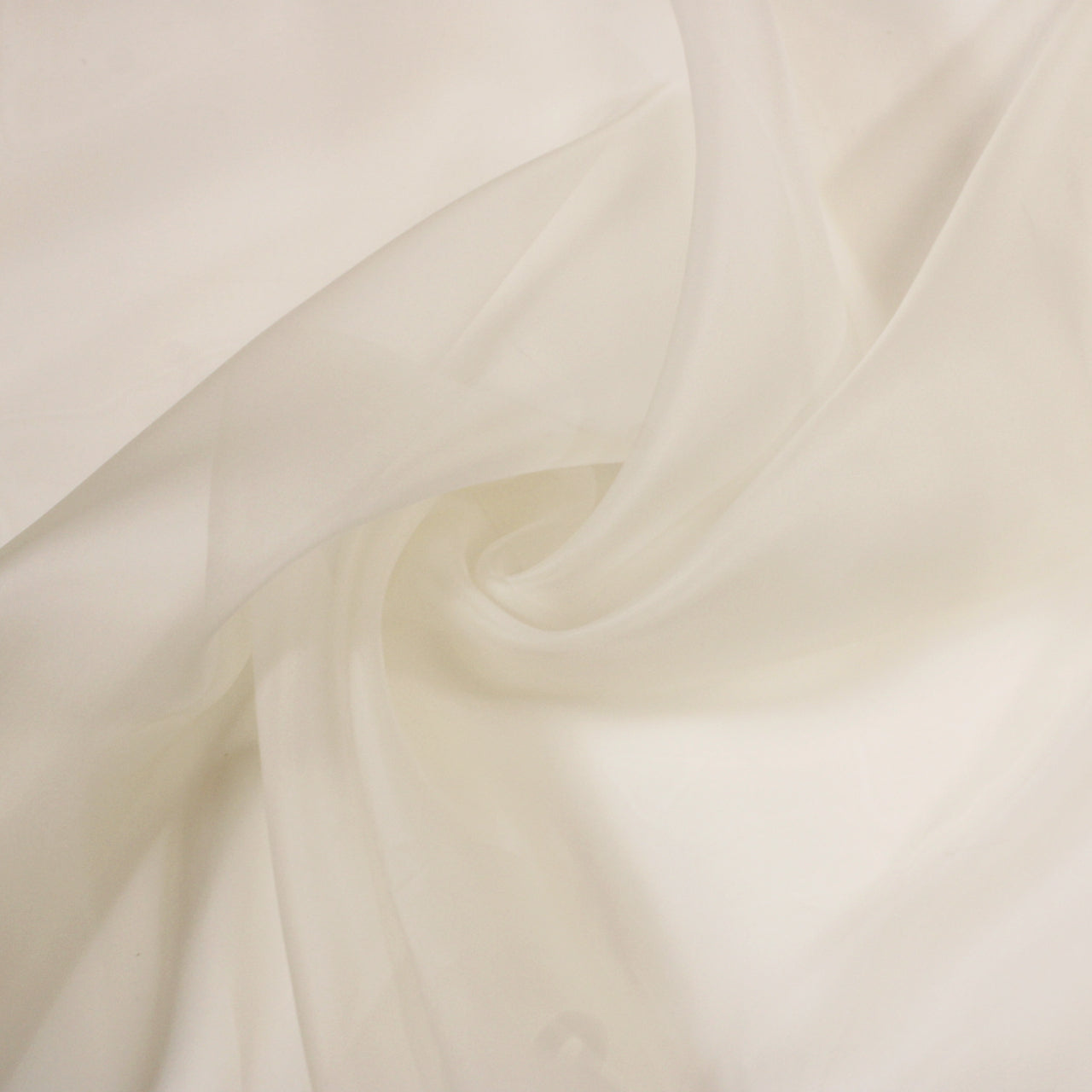 Organza in ivory. Burn tested as silk content. Measures 54" in width and available for order by the yard.
