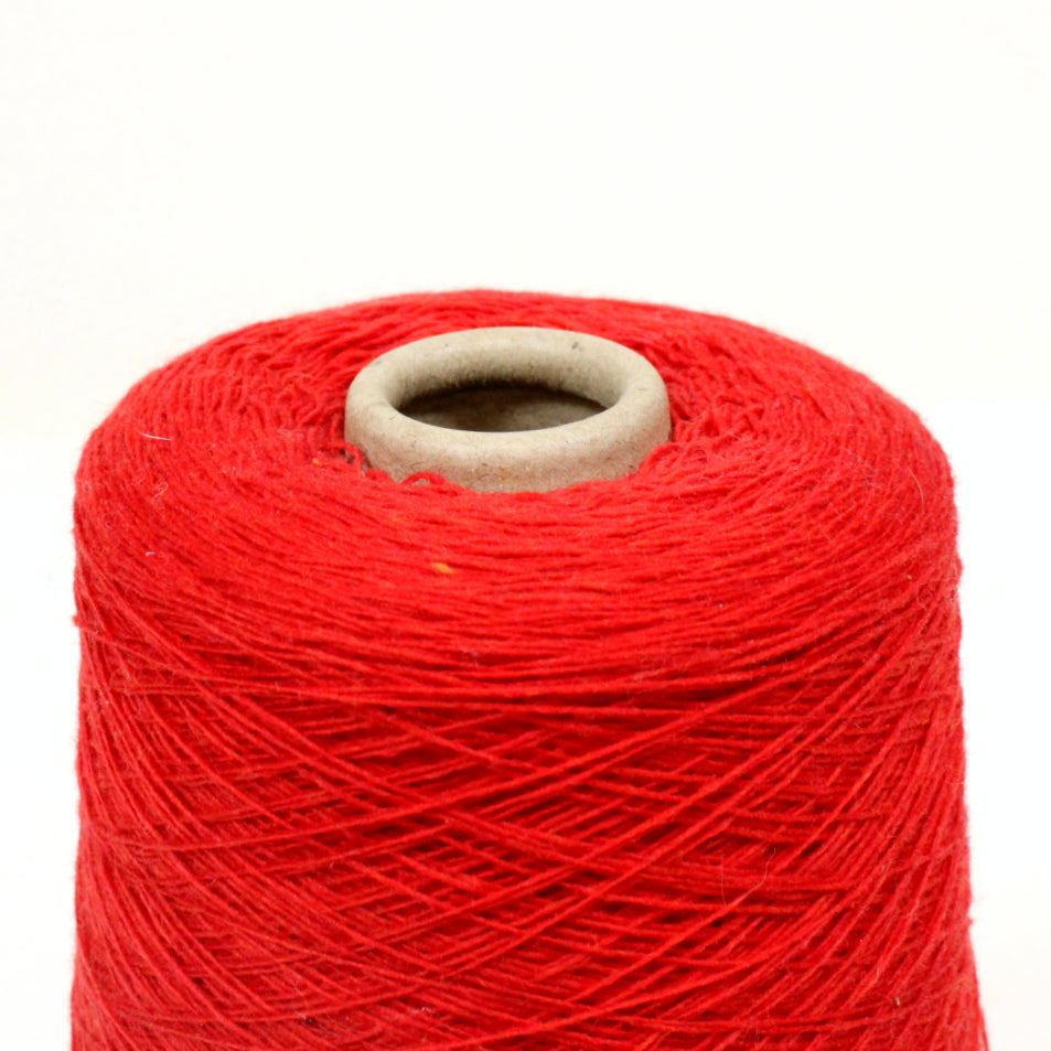 Ultra-fine red yarn. Burn tested as wool content. Gauge is marked as 2/40NM. Available for purchase as .25lb, .5lb, 1lb, and 2lb cones.
